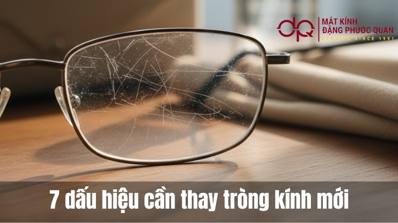 Nguyên nhân thường gặp là do lau kính bằng khăn giấy khô, va chạm hoặc sử dụng dung dịch không phù hợp. Nếu tròng kính của bạn bắt đầu xước nhiều hoặc ố vàng, đó chính là dấu hiệu cần thay tròng kính mới ngay lập tức.