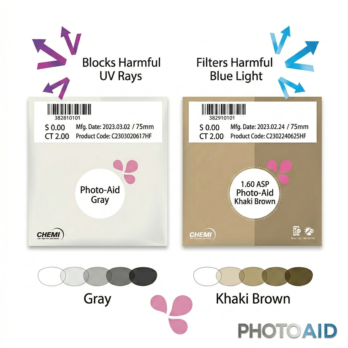Nếu PhotoBlue thường được nhắc đến nhiều ở nhu cầu liên quan ánh sáng xanh, thì Chemi Photo Aid 1.60 được chú ý hơn ở hướng cải thiện độ đồng đều của màu khi tròng đổi sắc. Nếu bạn quan tâm cảm giác nhìn và vẻ ngoài của tròng khi ra nắng, Chemi Photo Aid 1.60 là dòng nên thử trực tiếp trước khi chốt.