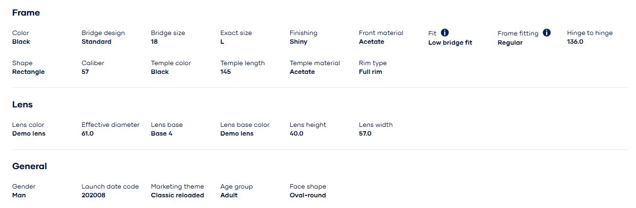 Thông số kỹ thuật của Gọng kính Burberry 0BE2334F