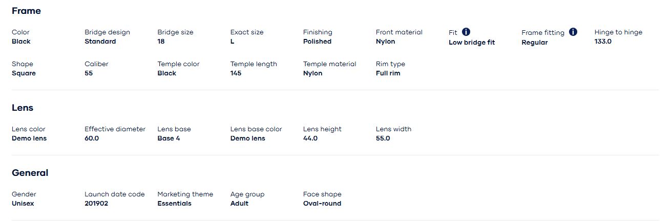 Thông số kỹ thuật của Gọng kính Rayban 0RX7168D