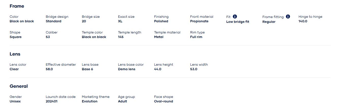 Thông số kỹ thuật của Gọng kính Rayban 0RX7216F