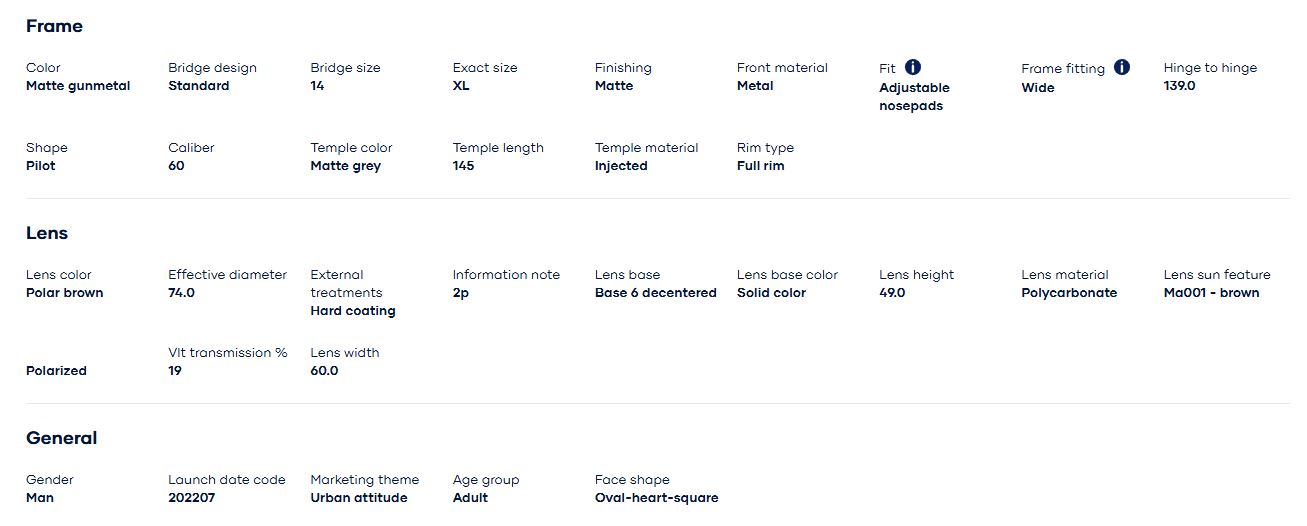Thông số kỹ thuật của Kính mát Armani Exchange 0AX2037S