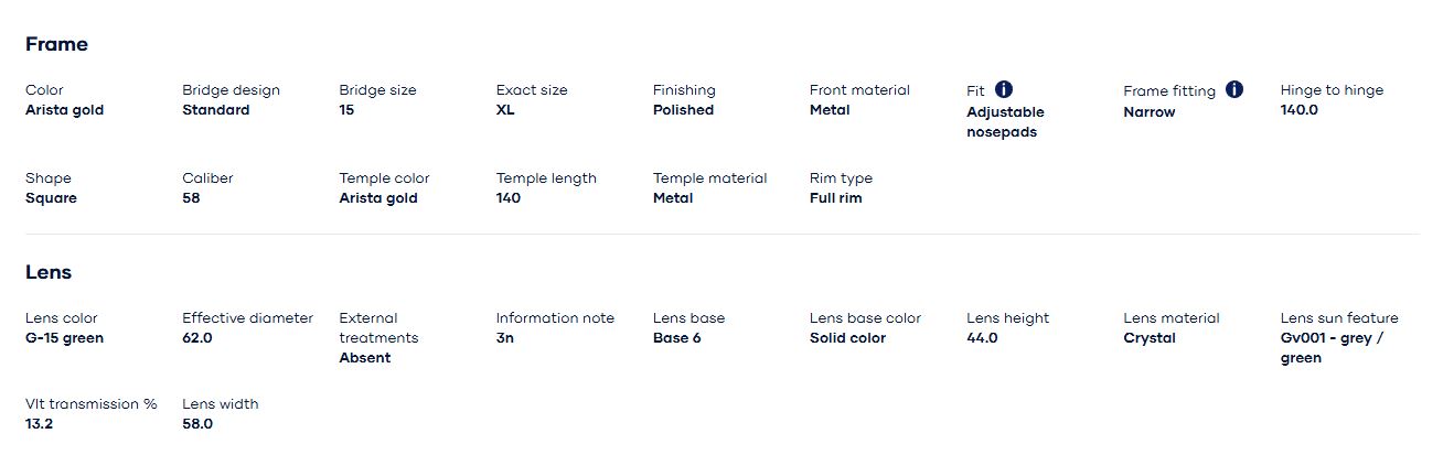 | Size kính |
