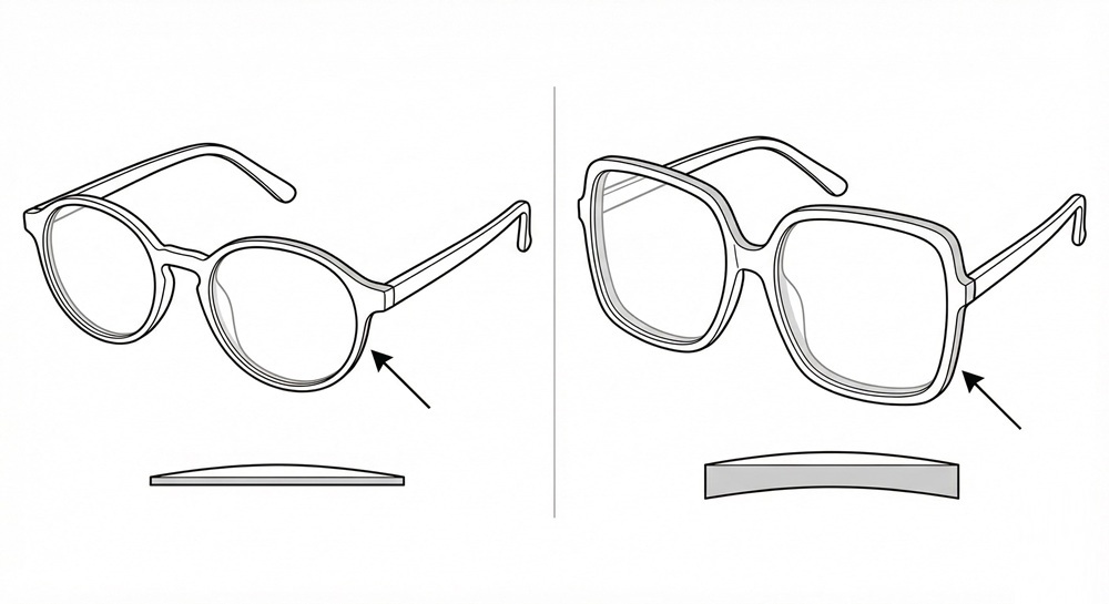 Hạn chế gọng oversize nếu độ cao: đẹp nhưng dễ làm tròng dày lộ.