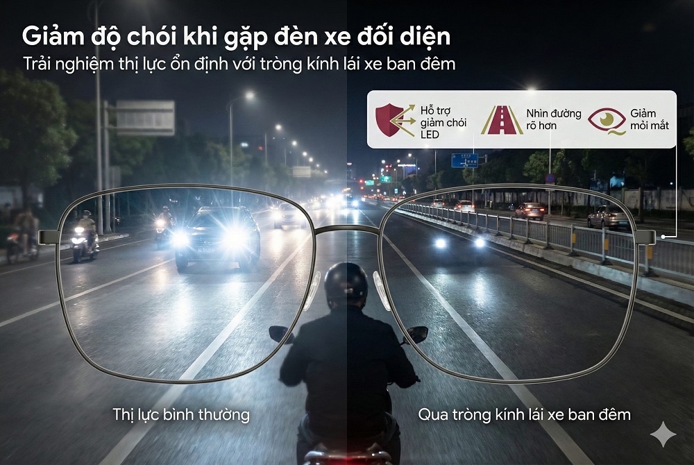 Nhiều người chỉ nghĩ rằng “do mắt yếu hơn” nhưng thực tế, chỉ cần một cặp tròng kính lái xe ban đêm phù hợp đã cải thiện ngay.